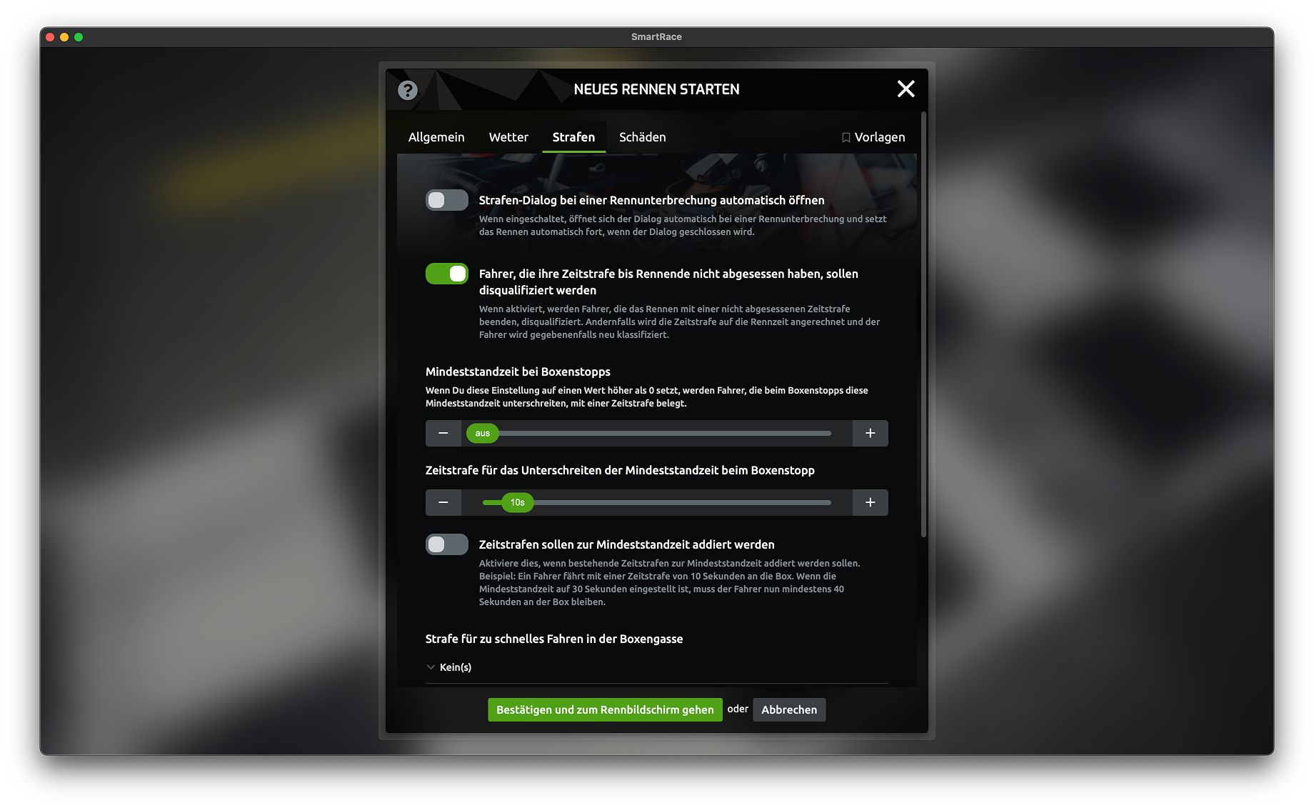1: Extra Strafvergabe bei Rennende wenn eine Strafe nicht abgesessen wurde. Hier wurden die "Strage" Renneinstellungen erweitert.